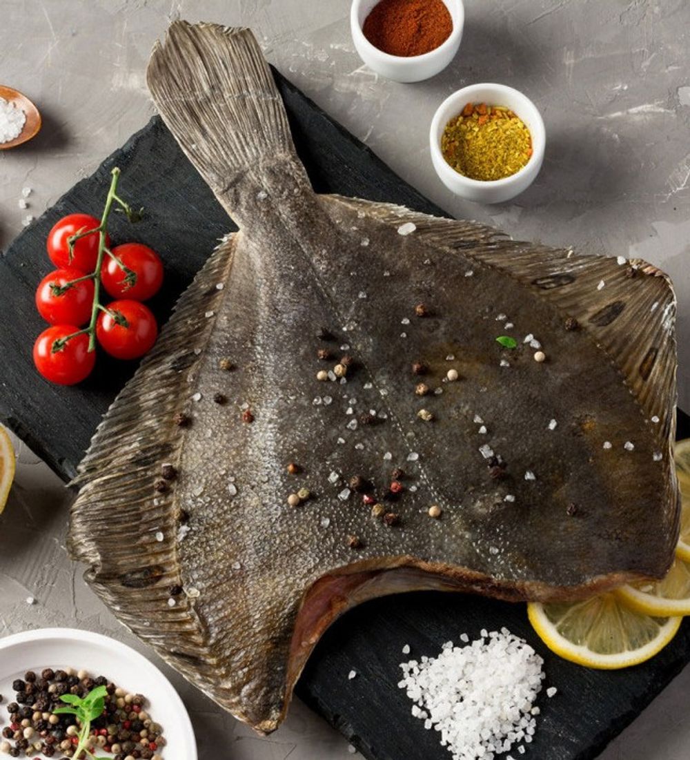 Камбала белобрюхая – плоская морская донная рыба семейства камбаловых с асимметричным телом, имеющим двойную окраску. Ценится за сочное, нежное, вкусное, с уточненной сладкой ноткой мясо, богатое легкоусвояемым белком, жирными кислотами, витаминами и микроэлементами.